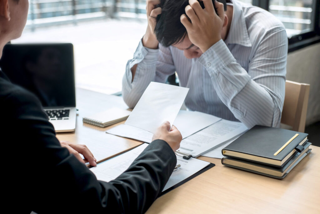Employer boss sending a remuneration letter to businessman in order to dismiss contract, changing and resigning from work concept.