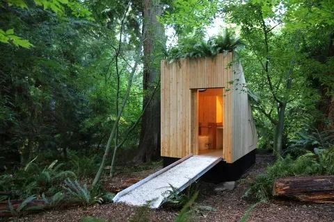 From the design perspective, the UBC team took care to make the unit approachable and practical. The structure is modular, prefabricated from timber panels, with cedar cladding (charred for antimicrobial effect), a green roof, skylights, and ventilated compartments to maintain airflow. It is wheelchair-accessible and aesthetically blends into a natural garden environment, mitigating many of the negative psychological or experiential associations people may have with “composting toilets.” The maintenance schedule is fixed — four visits per year — sidestepping unpredictable upkeep burdens that often deter municipalities from adopting nontraditional sanitation systems. The unit separates solids and liquids: solids enter the mycelium chamber, while liquids are stored, processed, and eventually used as fertilizer.